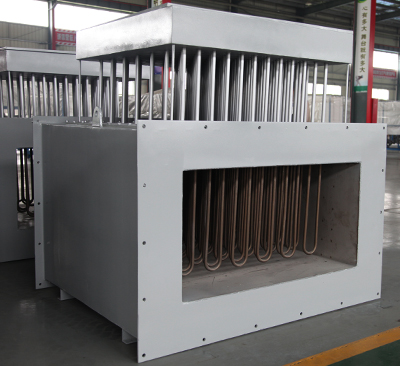 風道式加熱器主要用于風道中的空氣加熱,規格分低溫、中溫、高溫三種形式,在結構上的共同之處是采用了用鋼板支撐電熱管以減少風機停止時電熱管的振動,在接線盒中都裝有超溫控制裝置。低溫型可直接安裝在風道上,而中溫型、高溫型由于結構上的不同,在通道外壁至加熱器接線盒夾有100mm 厚的保溫材料,一方面減少整個通道的對外散熱,另一方面也減少了接線腔內的溫度。